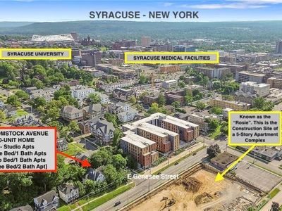 Investment property for sale in Syracuse at 101 Comstock Ave, Syracuse, NY, 13210 with 5% annual appreciation on a $1,150,000 basis while $4,267/mo rent supports operations. 38% in year one. Equity gained on principal adds $7,421/yr, and five-year appreciation sums $317,724 alongside rental yield of 4.45%. Five-year ROI measures 46.94% and total cumulative return in cash totals $174,885. Investors can finance this property with Ziffy Mortgage’s DSCR loan that underwrites to $4,267/mo property income versus a $5,629/mo payment rather than your W2s, Paystubs, Tax returns, or 1099 forms.