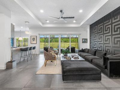 Welcome to the Caroline, your modern retreat in the prestigious Valencia Grove at Riverland, Port St. Lucies premier resort-style active adult living community! This stunning 3-bedroom, 2.5-bath residence seamlessly blends luxury, style, and comfort in every detail. As you step inside, youre greeted by expansive, open-concept living spaces finished with oversized 60" x 30" porcelain tile flooring throughout including the air-conditioned single-car garage, ideal for a home gym, workshop, or climate-controlled storage. Contemporary ceiling fans adorn the bedrooms, great room, den, and the single-car garage, while modern LED recessed lighting illuminates every room.