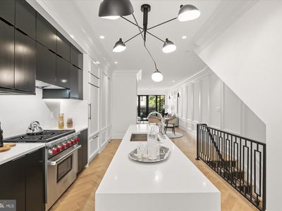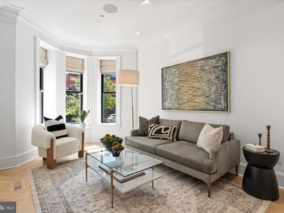 Beautiful Home, terrific Logan Location! Nestled along one of Logan Circle's most coveted tree-lined streets, this exquisite two-story condo effortlessly blends historical grandeur with the luxuries of modern living. The residence preserves its architectural heritage while incorporating the conveniences and finishes that define todays elevated lifestyle. Just steps from the vibrant 14th Street Corridor, with its eclectic mix of shops, restaurants, and cultural destinations, this home offers an unparalleled combination of location, style, and sophistication. Upon entering, the home immediately captivates with its striking white oak herringbone floors that flow seamlessly throughout, setting the tone for a space where elegance meets functionality. Custom-designed wrought iron railings add a touch of artistry to the open staircase, guiding you through a layout that balances openness with intimacy. The main level is highlighted by a dramatic dining room tucked within a turret, creating an elevated space for both entertaining and quiet reflection. A true chefs kitchen, outfitted with sleek European cabinetry, top-tier Wolf six-burner range, and a panel-ready Sub-Zero refrigerator, invites culinary exploration. The striking quartz waterfall island serves as both a functional centerpiece and a sculptural statement. The expansive living room is bathed in light from floor-to-ceiling windows, with a seamless transition to the private terrace, ideal for enjoying a quiet evening or hosting guests. Thoughtfully placed wall moldings and a hidden powder room further elevate the homes aesthetic, while soaring, voluminous ceilings throughout amplify the sense of space and light. On the lower level, high ceilings continue to lend a sense of grandeur, where three generously sized bedrooms are accompanied by equally stunning baths. The primary suite is a sanctuary of serenity, featuring an ensuite Zen-inspired bath complete with a freestanding soaking tub that commands attention. The spa-like experience continues with dual sinks, heated marble floors, and a separate shower. The second bedroom is equally luxurious, with its own ensuite bath boasting glamorous finishes, while the third bedroom shares a hall bath adorned with a mirrored vanitya nod to modern opulence. A washer and dryer conveniently located on the bedroom level enhance the home's functionality. This rare gem also includes the convenience of one secure surface PARKING spot and promises an exceptional urban living experience in one of D.C.'s most desirable neighborhoods with Whole Foods and Le Diplomate just down the street. Here, history and modernity coexist harmoniously, offering a lifestyle defined by refinement and ease.
