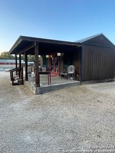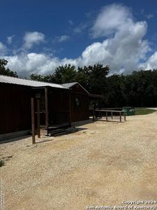 Unique turnkey property in the popular river region of the Texas Hill Country! This custom built home is truly one of a kind! Sitting on a half acre lot, right off of US Hwy 83 and a mile away from the cute and popular town of Leakey, you have the feel of being out of the city but you're just a short drive to your local stores, restaurants and businesses. This cute farm style home was built by the owner from the ground up. One of the most notable features is that it has the potential for multiple uses. Whether it's a residence, vacation home, short term rental or commercial property you're looking for, or any combination of these, this is your property. Close to the turquoise waters of the Frio River and approximately 15 minutes from Garner State Park as well as the famous Concan resort, makes this spot very attractive. The front covered patio has ample space for outdoor seating to enjoy those beautiful Texas evenings. Double pane glass doors open up into the open combination living and dining area. There are large windows in front of the house that allow for an abundance of natural light into these areas. There is one bedroom and one bathroom in this part of the home. The dining and living area have vaulted ceilings with wood floors throughout. From the living room you will walk down a long hallway into the specialized commercial kitchen. The owners like to cook so you will find several vent hoods, a large gas stove, dishwasher, deep sinks and plenty of areas for chopping, preparing and serving food with the marble counter tops and a stainless steel cooking island. The back door from the kitchen leads to a large outdoor covered patio with a custom deck and two very notable barrel, wood stoves. You can sit out here on a winter evening and stay nice and warm! Attached to the home and next to the back door, is a laundry room with a sink, toilet and full shower. If you love the outdoors, you will love this amazing outdoor shower next to the laundry room. There is a covered, outdoor kitchen being added and will convey with a bbq grill. There is a 13x26 lighted and covered carport that will hold 4 cars, an additional covered storage area newly built that is 663 square feet and has 40 feet of shelving. At the back of the carport and covered storage area are two insulated, heated and cooled areas. One is 11x13 and the other is 10x26. These can be used for additional storage or if you were to purchase this property as a short term rental, these can be easily converted into sleeping areas with bunkbeds. To the back of the property there are two RV spots with 400 amp electrical hook ups. The property backs up to a large, fenced, wooded area so there is no one living close behind or on either side of the property. There is a private well and a 1000 gallon septic tank installed in 2019, lime stone blocks clearly marking the property line on the north side, and solar lights atop the fencing as well. A new survey is available and a recent appraisal has been done. There are no HOA or POA's so you can use the property as you choose. With the set up of a separate full bathroom, a washer and dryer inside and a full size outdoor shower, it would lend itself well to short term rental property. With a few additions and modifications, it could sleep numerous people. Also, with the commercial style kitchen, large back patio and the style and view from the front it could easily be a commercial property! Perfect for someone who owns a restaurant. You really have to see this one to appreciate all the special features and unique options this property brings. This really is a rare opportunity to own a home in the beautiful Texas Hill Country with so many conveniences and attractions close by and so many ways to take advantage of this properties one of a kind features. Come see it today!!! More photos coming of completed outdoor kitchen!