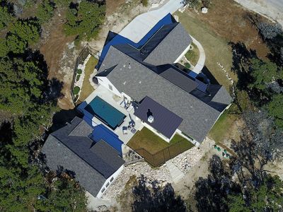 Gorgeous Custom-Built Home and Guest House in the Serenity Oaks Gated Community! Nestled on a meticulously manicured 1.214-acre lot, this extraordinary property offers the perfect blend of luxury, comfort, and craftsmanship. With a total of 3,961 square feet of living space, this property provides an unparalleled living experience. The main residence, completed in 2023, offers 2,921 square feet of beautifully designed living area, featuring 4 spacious bedrooms and 3.5 elegant bathrooms. The open-concept floor plan includes a dedicated home office and an oversized 3-car garage, ensuring ample space for both work and play. The owners spared no expense in choosing high-end finishes and thoughtful details that reflect superior quality throughout. Completed in January 2025, the 1,040-square-foot guest house features a spacious family room, a full kitchen with high-end appliances, 1 bedroom, 1.5 bathrooms, a laundry room, and a master closet. It provides an exceptional and private living space, ideal for guests, extended family, or multi-generational living. It mirrors the main home's exceptional craftsmanship and luxury, offering both comfort and style. Both homes share access to a stunning lap pool and an expansive outdoor patio, complete with an outdoor kitchen and a cozy fireplace. Located at the end of a quiet cul-de-sac, this rare gem offers ultimate privacy and tranquility, all within the secure, prestigious Serenity Oaks Gated Community. MAIN HOUSE FEATURES: A spacious open floor plan featuring luxury vinyl plank flooring throughout. The chef-inspired kitchen boasts custom Michael Edwards cabinetry, KitchenAid stainless steel appliances, a built-in double oven, gas cooktop, microwave, ice maker, and gleaming quartz countertops. Open shelving and a large walk-through pantry add both style and storage. The living and dining rooms are enhanced by wood beams, high ceilings and automated window shades, creating a warm and inviting atmosphere. An additional office/study has been thoughtfully incorporated into the home featuring two custom-built desks offering ample room for productivity and organization. An oversized 3-car garage, 500-gallon propane tank, Generac backup generator, hybrid water heater, and dual-zone air conditioning with Ecobee Smart Thermostats ensure both comfort and convenience. GUEST HOUSE FEATURES: With 1040 square feet, the guest house offers ample room for comfortable living while maintaining a charming atmosphere. The fully equipped kitchen and living area are perfect for hosting visitors or accommodating extended family, providing the flexibility to entertain or spend quality time together. This private retreat is thoughtfully designed with custom Kent Moore cabinets and top-of-the-line GE Cafe appliances, ensuring both style and functionality. The guest house also features a tankless gas water heater, water softener, 250-gallon propane tank, and a convenient laundry room. The accessible/adaptive master bathroom provides added comfort and ease of use. For outdoor enjoyment a spacious 10x12 wood exterior deck provides the perfect setting to relax and unwind. PROPERTY FEATURES: Designed for ultimate relaxation and entertaining, the backyard is an entertainer's dream. The stunning lap pool features heated and cooled water functions, LED lighting, and an automated control system that lets you manage everything directly from your phone for ultimate convenience. A fully equipped outdoor kitchen includes a gas and Kamado grill, sink, refrigerator, and a spacious island for prep work. Enjoy cozy evenings by the outdoor fireplace or take a refreshing dip in the pool while soaking in the serene surroundings. Both homes sit on an oversized lot with ample space for storing your boat or watercraft and is just a short drive from serene Canyon Lake. The property also includes full landscaping, irrigation system, and a keyless entry system for ease of access. This is a rare opportunity to own a true masterpiece in a highl