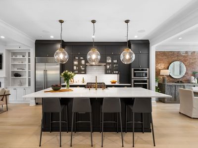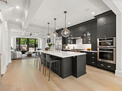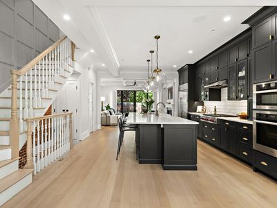 This large historic townhome has been completely gut renovated and extended and provides a thoughtfully designed layout with both formal and casual entertaining areas. The architect and designer have retained all the wonderful aspects of historic brownstone architecture and incorporated expert craftsmanship with a stunning design that perfectly blends modern and classic styles that will delight even the most sophisticated townhome buyer. No detail has been overlooked in the renovation of this stunning home. Entering the parlor floor through double doors and built-in mudroom you are struck by the open floor plan and the abundance of light that streams through the home from its southern exposure. The center of the home is anchored by a custom chefs kitchen with cabinets by custom cabinetry, quartz countertops, Wolf stove, Miele wall ovens, Subzero Fridge, Fischer Paykel dishwasher and wine fridge. The dining room features original exposed brick and floor to ceiling windows and the large living area has gorgeous coffered ceiling with a lovely gas fireplace flanked by custom built-in bookcases and storage. The exceptional layout is perfect for entertaining and enables a seamless flow from the kitchen to living room while also providing access to the back garden through oversized glass sliding doors. The second floor is reached from the completely re-built white oak staircase with custom paneling that leads to a large primary bedroom with custom built-ins, a large walk-in closet with custom cabinetry, and en-suite five piece bathroom finished with natural stone tile, unique Zellige subway tile over custom double vanity with restoration hardware fixtures, a large soaking tub and custom framed glass shower, linen closet and heated floors. On the second floor you will also find a separate bedroom, and a full laundry room with oversized Electrolux washer/dryer. The third floor has three more bedrooms and two well-appointed bathrooms with one en-suite. The garden level is perfect for movie night with a large wide open family/TV room with access to the garden, a wall of custom cabinetry, wet bar, a refrigerator, and another playroom with even more storage/cabinetry.
