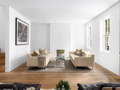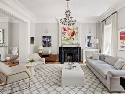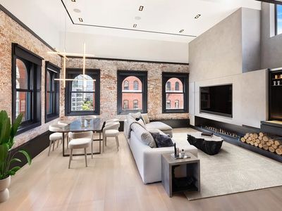 The townhouse has a separate staircase leading from the ground floor entry to a remarkable duplex on the third and fourth floors. The duplex is fully independent of the rest of the home, possessing its own kitchen, bathroom and sauna. The focal point is the 26' tall living/dining area which features an enormous skylight and a wood-burning fireplace. The original iron chain pully system is still in place, providing a link to the building's past as a sculpture studio. The duplex also has access to an 18' x 14' South-facing terrace, which provides an ideal sun-filled respite for morning coffee or afternoon tea.