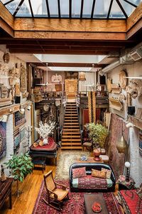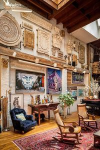 The townhouse is located in the Rose Hill neighborhood of downtown Manhattan, several blocks East of Madison Square Park, and just North of Gramercy Park. It has long been a font of creative activity. From 1909-1972, it housed the Rochette & Parzini sculpture foundry, a prolific firm founded by a Frenchman and an Italian which produced fine architectural sculpture for city landmarks such as the Morgan Library, the Waldorf Astoria Hotel and St. Patrick's Cathedral. Many of the walls of the townhouse are adorned with plaster models of these architectural elements, which the owner has artfully displayed. A recent profile of this extraordinary home in the New York Times provides additional historical background.