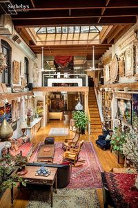 Former home of the famed sculpture studio Rochette & Parzini, this extraordinary 5,000+/- square foot building combines the privacy of a townhouse with the voluminous loft-like aesthetic of downtown artist's studios. Upon entering the 4-story home, past a windowed home office, bathroom and kitchen, the eye is immediately struck by the palatial dimensions of the living/entertaining area, which boasts ceiling heights of 25' in places. This grand space is bathed in sunlight by three massive skylights and three large West-facing windows. The current owner, noted photographer Clara Aich, has long used the space as an informal "salon" for musical performances, plays and other inspired gatherings for friends and family. A dramatic wooden staircase at the far end of the room ascends to a windowed mezzanine which doubles as a sleeping loft for guests. Underneath the mezzanine is a sauna and storage area.