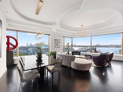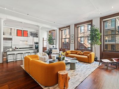 This exceptional five-bedroom, five-and-a-half-bathroom, 3,788-square-foot residence blends old-world charm with elevated modern design. Upon entry, a gracious formal gallery leads to a spacious open-concept Great Room and kitchen overlooking Broadway, filling the home with all-day natural light. Ten-foot ceilings amplify the homes grandeur. An adjacent library/media room completes the living space.