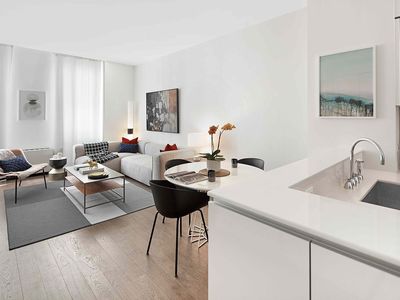 Residence 8N spans over 780 square feet, featuring hardwood floors and soaring 10-foot high ceilings. The open kitchen is a chefs dream, equipped with top-tier appliances from Bosch, Miele, and Liebherr, complemented by sleek Poliform cabinetry, Caesarstone countertops, and a stylish Lazza crystallized breakfast bar, which adds elegance and provides extra storage while seamlessly blending style and function.