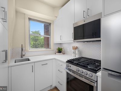Welcome to this spacious, and fully renovated, luxury condominium in the heart of sought-after Georgetown! With the expert touch of an award-winning kitchen and bathroom designer, every square inch of unit 410 has been transformed into a calming, classic, and modern oasis. The high-end finishes, serene color palette, and feeling of spaciousness are palpable. Experience tranquility heightened by amazing natural light from large east facing windows, and the lush green views from the main living space and kitchen. This timeless, and brand new, jewel box kitchen is bright, fresh, and highly functional. The beautiful quartz countertop, classic penny tile backsplash, stainless steel appliances, and paneled (hidden) dishwasher make this kitchen overflow with charm. Featuring ample storage, including floor-to-ceiling pantry, and pot racks bring immense functionality to this impeccably designed space. Enjoy a classically renovated and new bathroom. Stunning subway tile, Kohler fixtures, recessed medicine cabinet, and tub / shower storage make this bathroom highly functional and spa inspired. The serene open living and dining space has a tree-filled view, and is flooded with natural light. It offers a multitude of layout options with ample room for a dining area, living room, desk area, and an easily sectioned off bedroom space. Just off the main living area is a dressing / flex space leading to the bathroom, and 2 large walk-in closets (in addition to the one in the main living area). All 3 closets have professionally designed custom Elfa closet systems. Ample storage options can be customized to meet your exact needs, and this unit feels like a large one bedroom. The dressing / flex space can easily accommodate a dresser, wardrobe, shelving, and more. Building amenities include a 24-hr Front Desk, beautiful rooftop deck with fantastic tree-filled and skyline views, a fitness center, Amazon lockers, in-house maintenance, parking garage, and additional storage available. The low condo fee includes all utilities except for cable / internet. Additionally, this is a pet-friendly building. Rose Park is one block away from the back of the building with a playing field, walking / biking trails, and pickleball, tennis, and basketball courts. Rose Park is the site of a weekly Farmers Market and Summer Concert Series. Explore the outdoors further via nearby Rock Creek Trailhead, and the Georgetown Waterfront. Also, just blocks away is Streets Market, multiple top restaurants, quaint shops, a pharmacy, dry cleaner, and Dumbarton Oaks Park. Dupont Circle Red Line Metro is located 0.5m east, and the MetroBus is conveniently located on Q Street. Georgetown living includes renowned dining and shopping. Enjoy the iconic side streets and stunning gardens / parks, cross the bridge in moments to enjoy Dupont Circle and yet another Farmers Market. Adjacent to your Georgetown / Dupont neighborhood are West End, Kalorama, Downtown, Foggy Bottom, Glover Park, Woodley Park and Adams Morgan neighborhoods. Foggy Bottom Metro is only a half mile away if you need access to the Blue, Orange and Silver lines. Conveniently located only 2 blocks to Streets Market. Whole Foods, Safeway and Trader Joe's are all less than one mile from this one-of-a-kind residence.