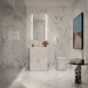 The private quarters are discreetly tucked away from the living space. The bedroom features a south facing windows with townhouse views and a large closet. The beautifully appointed bathroom features Honed Bianco Carrara wall and floor tiles, a custom vanity and LED medicine cabinet, and polished nickel fixtures.