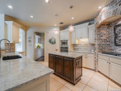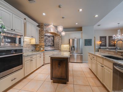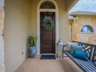 This pristine home on a near 1/3 acre greenbelt lot in highly coveted, guarded Emerald Forest combines a thoughtful plan, tasteful updates, and a resort-style backyard retreat. Arrive, and fall in love with the curb appeal afforded by the stone and stucco elevation, mature oak trees, and the manicured lawn. Step inside to a grand foyer with captivating views to the rear courtyard, grounds and green space beyond the property. Designer ceilings appeal to the eye, while natural light floods the residence from expansive windows. The chef's island kitchen, with well-appointed butler's pantry, boasts 36 inch 5 burner gas cooking with classic arched brick surround, granite counters, quartz backsplash, custom white open-face cabinetry, modern fixtures, reverse osmosis drinking water, a composite sink, and an expansive walk-in pantry. It also hosts a breakfast bar, built-in desk space or coffee bar, and an ample morning area. Doubling as a service buffet, the butler's pantry offers granite counters, more open-face white cabinets and hardwoods floors that flow into the formal dining room. It's roomy, anchored by a modern light fixture, designer ceiling treatment and natural light. The inviting living room features built-in cabinetry, plantation shutters, and backyard pool views, hardwoods, a large ceiling fan and warm finishes. A second living space is afforded by the sunroom wrapped in windows with shades, providing tranquil views of the backyard, green space, and wildlife. There is a well appointed guest bath to enhance entertaining as well. The private owners escape offers spacious accommodations, tray ceiling, recessed lighting, and a spa-like ensuite with jetted tub, walk-in shower, dual vanities with makeup vanity, and a generous walk-in closet. Guest quarters are equally impressive, with two spacious bedrooms offering ample closet space, connected by a Jack-and-Jill bath with large walk-in shower and a separate tub/shower combo. Throughout the home, there's no carpet-only wide-plank hardwood floors, and large ceramic tile. The laundry room has cabinet storage, a deep sink, and full-sized connections. It connects to the oversized side-entry 2 car garage with luxury overhead door. The garage boasts epoxy coated floors, built-in cabinets, a water softener, and it houses the sprinkler system controls. The backyard is your private paradise, with in-ground, heated swimming pool surrounded by tropical plants, raised gardens and low-maintenance artificial turf. The privacy is enhanced by the luxury of having no immediate rear neighbor. With its prime location in a prestigious community, access to highly rated schools, a timeless floor plan, luxury upgrades, and resort-style outdoor living, this is the one.