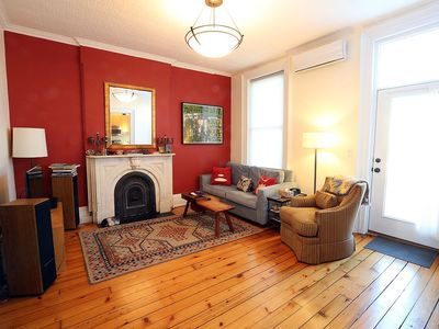 Quartered oak floors run throughout the home, offering multiple-zone central heating and cooling and a dedicated in-unit oversized Washer and Dryer.