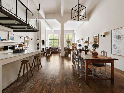 Extraordinary loft living awaits in this sun-kissed three-bedroom, two-bathroom duplex featuring impressive proportions, a flexible layout, generous storage and wonderful natural light in an industrial-chic West Village co-op directly across from Hudson River Park.