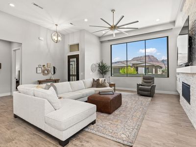 Welcome to life in Mojave Mesa - where quality meets comfort in all the right ways. This beautifully upgraded home is in impeccable condition and has been very lightly lived in, giving it that fresh, like-new feel throughout. Step through the striking modern metal front door into a bright, open-concept layout with luxury vinyl plank flooring and large picture windows that flood the space with natural light and showcase stunning Red Rock views. The kitchen is a dream, featuring quartz countertops, sleek cabinetry, top-of-the-line LG ThinQ appliances, and a handy butler's pantry for extra prep and storage. The home also features 2,528 SqFt of single level living, 4 bedrooms, 3 bathrooms, 3 car garage, 0.20 acres, and built in 2022. The spacious primary suite offers a relaxing retreat with a walk-in glass shower, a soaker tub, and a large custom walk-in closet. Custom window coverings throughout for comfort and privacy. Outside, enjoy a fully landscaped yard and a large covered patio perfect for entertaining or just soaking in the views. The large 3 car garage (923 SqFt) includes a tandem 2-car garage that offers plenty of space for vehicles and storage. With quality finishes, modern style, and barely a trace of wear, this Mojave Mesa gem is move-in ready and truly stands out. Minutes from amenities in downtown Saint George, such as over 16 golf courses including Black Desert Golf Course home to the Fall 2024 PGA TOUR's FedEx Cup, hiking and cycling trails, and a short drive to some of America's most awe-inspiring places; National parks Zion, Bryce and the north rim of the Grand Canyon, and state parks like Snow Canyon, Sand Hollow Reservoir, Gunlock Reservoir, Quail Creek Reservoir, and nearby Dixie National Forest. There is no doubt that the word is out that at 2,700 feet above sea level, on the edge of the Mojave desert, Colorado Plateau, and the Great Basin, lies one of America's most beautiful and distinctively geological places, Saint George! No other place says that you have arrived than this beautiful home. All information herein is deemed reliable but is not guaranteed. The buyer is responsible to verify all listing information, including square feet/acreage, to the buyer's own satisfaction.