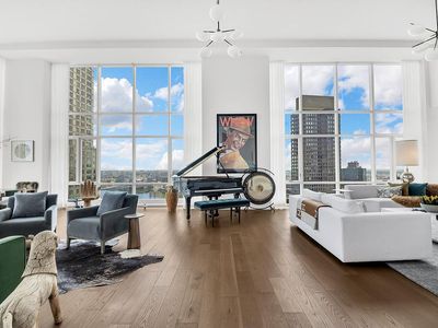 Welcome home to Penthouse 51, your new oasis soaring high across the sky! This is a luxurious top floor penthouse(which was featured on HBO MAXs Gossip Girl) at The Beekman Residences, connected to the iconic and cleverly stylish Beekman Hotel, and is located on the edge of the Financial District, and a stones throw away from Tribeca! The Penthouse boasts almost 17 foot ceilings and floor-to-ceiling glass windows in the 50' long by 20' wide great room. In this room, youll find breathtaking panoramic downtown cityscape views, and both Hudson and East River views, as well as the New York City skyline. PH 51 is an entire full floor penthouse, assuring residents the utmost of privacy. The unit maintains three bedrooms, three and half baths, and 3,554 square feet of indoor space, as well as a 155 square foot private outdoor terrace, custom designed by Thomas Juul-Hansen.