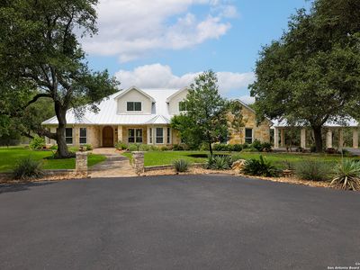 Main House 4017 SF; 4/3/1. Guest House 1703SF; 2/1 with sunroom. Barn 3280SF; workshop; equipment storage; equipped with electric and water; turnouts and access to fenced and cross fenced paddocks. Cabana with masonry fireplace, large granite countertop, and two mini fridges. 17.74 acres of private property with several majestic mature live oaks complementing wildlife exempted acreage. Intimate community with limited ownership makes for great privacy and convenience. The Historic Steel Ranch has the original Homestead and barn located nearby. Meticulously kept, conveniently located just minutes from downtown Boerne. As you enter the 4ft arched alder front door, you are greeted by a beautiful barrel vault foyer, open to a vaulted living room as well as lovely dining room and beautiful kitchen. Every surface in the home has been updated with built-in storage, pristine finishes and elaborate touches including all light fixtures throughout the entire home being adapted to LED. Tons of natural light complements this beautiful home, including wonderful skylights with tons of light flooding through these special spaces. Special game room with unique axis hide print carpeting and extra family living space right off the kitchen. Wide open floor plan with recently installed wide plank hickory flooring throughout as well as great dark beams complementing the ceilings. The wonderful potbelly wood-burning stove in the main living space is a warm touch in this open floor plan. Wine refrigerator and custom cabinetry built in. The oversize kitchen would be enjoyed by any culinary artist. A large island makes for a great workspace. The island quartzite countertop waterfalling on both ends is stunning. Recently updated stainless steel appliances, offering all electric and induction stoves, pot filler for convenient cooking. Stainless steel refrigerator will remain. Separate office space complete with tons of built-in custom cabinetry. Primary suite on the main floor with excessive space for sitting area, opens out onto a private deck with scenic views of wildlife. Recently updated, beautiful primary suite bathroom includes elaborate shower with double heads and standalone tub includes exquisite fixtures, double vanities with waterfall edge counters, coffee bar, and custom Zellige tile. New oversize closet with pull down third row rods, custom finishes, built-in jewelry cabinet. All guest bedrooms have beautiful walk-in closets and updated bathrooms. Upstairs, you are greeted by a grand bonus area that will serve wonderfully for entertainment, work out room or secondary family room or media. Two bedrooms with fabulous views off this space have wood floors, walk-in closets, and tons of storage. Outstanding outdoor living spaces, including Cabana with Masonry fireplace, large Granite countertop, includes two mini fridges that will remain. The perfectly private acreage includes a wonderful Koi Pond and wildlife exemption. Guesthouse with 2 bedrooms, features an open floor plan with hickory custom cabinets in the kitchen as well as flanking the living room fireplace. The sunroom off the living room and kitchen brings the outdoors in. Main House Special Features include: Equipped with Sono's sound system; Central vac system; Separate septic systems for main and guest house; Recently updated all metal roofing on all the buildings including the barn; Three new HVAC units in the main home; Blinds and covering throughout home with beautiful custom cased windows; Well, has 2000-gallon water storage; Recently replaced submersible and booster pumps; Oversized two car garage, painted floor, built-in cabinetry; Three-car carport; Guesthouse Special Features include: Laundry room off the closet; Central vac; Granite countertops; Vaulted tongue and groove ceiling in living room; Porcelain tile flooring; Carport, providing covered parking for your guests. Do not miss the amazing listing video located in the Virtual Tour section.