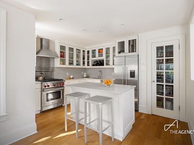 The expansive living room, enhanced by dual exposures and a stately gas fireplace, sets the stage for both intimate gatherings and sophisticated entertaining. A private den and formal dining room offer versatile living and entertaining options, while the state-of-the-art kitchen is a chefs dream, outfitted with granite countertops, Birdseye maple cabinetry, and top-tier appliances including Sub-Zero, Miele, and a custom Gaggenau oven.