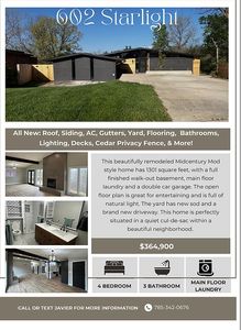 Investment property for sale in Salina at 602 Starlight Dr, Salina, KS, 67401 at $364,900 posts ROI 15.06% with from $1,939/mo rent. Total monthly income equals $1,939/mo. Return on cash invested measures 15.06% and rental yield reads 6.38% at the current $364,900. Equity gained on principal adds $2,355/yr, and 5% annual appreciation supports $100,815 by year five. Five-year ROI prints 77.48% and total cumulative return in cash totals $93,720. You can finance with Ziffy Mortgage’s DSCR loan, which relies on $1,939/mo property income rather than your personal income records (W2s, Paystubs, and Tax returns).