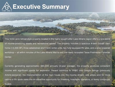 Investment property for sale in Athens at 6159 Crestview Dr, Athens, TX, 75752 earns from $2,694/mo rent with a $7,831/mo payment. Total monthly income totals $2,694/mo. ROI tracks 0.27% on current figures, and rental yield reads 2.02% at a $1,600,000 purchase. Equity gained on principal adds $10,325/yr, and 5% annual appreciation supports $442,051 over five years. Financing can be set up with Ziffy Mortgage’s DSCR loan, which is driven by $2,694/mo property income instead of your personal income.