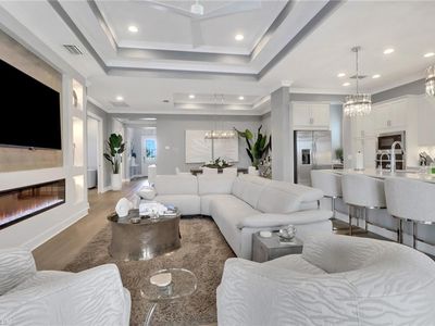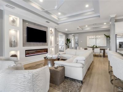 Welcome to your dream oasis in sunny Naples, Florida. This stunning contemporary Gardenia model pool home perfectly positioned on one of the most desirable lots in The Isles of Collier Preserve, offering an unparalleled blend of modern luxury and serene natural beauty. With breathtaking preserve views to the rear and expansive water views to the South, this residence provides a truly private and tranquil setting. Featuring 2-bedrooms plus a spacious den (optional 3rd bedroom) the home is filled with custom upgrades, designer touches, and a versatile open-concept layout perfect for both entertaining and everyday living. As you step inside, you'll be greeted by an atmosphere of elegance and comfort, highlighted by new light fixtures, ceiling fans, plantation shutters, custom wallpaper, tray ceilings and crown molding throughout. The spacious great room flows effortlessly into the dining, and gourmet kitchen areas, where a custom-built Dimplex fireplace TV feature wall enhances adds a sophisticated touch. Sliding glass doors flood the interior with natural light and offer picturesque views of the surrounding landscape. The kitchen is a chef's dream, featuring stainless-steel appliances, 2 built in ovens, wine fridge, waterfall quartz countertops, solid quartz backsplash with ample cabinet space & coffee bar. Whether cooking a quiet meal or hosting a dinner party, this kitchen is sure to impress. The luxurious primary suite provides a peaceful retreat, complete with an en-suite bathroom and his and hers walk-in closets. Wake up to serene preserve and lake each morning and unwind in the evenings with a glass of wine on your own private lanai. Step outside to your own personal paradise, where a screened-in lanai with built in outdoor kitchen sets the stage for al fresco dining. The sparkling pool with waterfall hot tub is the perfect spot to cool off on warm afternoons or relax under the stars in the evenings. With its prime location in Naples just minutes from 5th and 3rd avenues, you'll enjoy easy access to world-class shopping, dining, entertainment options, as well as Naples pristine sugary sand beaches and championship golf courses just minutes away. The Isles of Collier amenities include a grand clubhouse, state of the art fitness center, resort style walk-in pool, lap pool, spa, saunas, tennis, 12 pickle-ball courts, boccie, hiking, biking, kayak launch, dog parks and boat tours on the Cypress Waterway. With a full social calendar of lifestyle events, parties, and gatherings, there's never a dull moment at The Isles of Collier Preserve. Onsite, the Overlook Bar & Grill offers lunch, dinner, and evening entertainment without leaving the community. Just minutes from the US Open Pickleball Center and downtown Naples' iconic Fifth Avenue, with easy access to Naples world-class beaches, boutique shopping, diverse dining, and cultural attractions. Don't miss your chance to own this exceptional property schedule your private showing today!