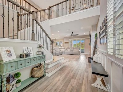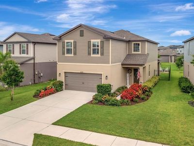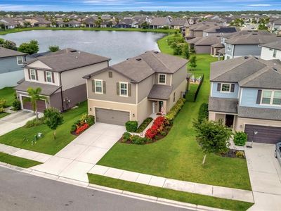 Step into this immaculately maintained 4-bedroom, 2.5-bathroom home boasting 2,519 square feet of luxury living and top-tier builder upgrades. The house offers Serene Pond Views and it is located in the exclusive Trevesta community, where modern luxury and scenic beauty converge. You'll fall in love with the high ceilings, the natural light, the amazing Water View and the Open Floor Plan of this home that create a warm and welcoming environment. Upon entrance you will be greeted by the elegant foyer and the premium water-resistant vinyl flooring that flows seamlessly throughout the entire downstairs, upstairs & the stair treads. The open-concept layout provides the perfect balance of spaciousness and comfort, complemented by custom Plantation Shutters on the sliding doors and windows that enhance both privacy and elegance. This property is loaded with Tons of Seller's Upgrades all around such as Premium Lot, Premium Exterior Elevation, Plantation Shutters Throughout the house & Extended Lanai with tongue & groove ceiling. Step outside your private outdoor retreat complete with a Paved Pergola, Gas Fire Pit and Fully Fenced Backyard that is perfect for family entertaining. Enjoy the upgraded modern kitchen featuring exquisite cabinetry with under-cabinet lighting, top-notch Stainless-Steel Appliances, granite countertops and Custom Extended Kitchen Cabinetry / Coffee bar area for extra comfort. This home features custom details throughout - multiple shiplap & board-and-batten accent walls, elegant wainscoting in the half bathroom on the first floor. A built-in shiplap electric fireplace & wood barn door add warmth and character to the main living area. Ground level also features the fourth bedroom/ Bonus Room that is currently used as an office, and it connects to the powder room for convenience. This versatile place can be easily used as a guest room, playroom, or quite simply, a canvas to bring your heart's desires to life. The staircase has been upgraded with stylish open metal railing, creating a clean, contemporary feel that flows seamlessly into the second level. Upstairs, you will step into a spacious LOFT that adds an extra layer of charm to this already captivating home. The Loft is perfect for a family room, home office or media room and reveals the beautiful pond views. The master suite located upstairs has an impressive walk in closet, with two other bedrooms to the opposite end of the home. The laundry room is also located upstairs for convenience, Washer /Dryer Convey! Some of the custom enhancements include new bathroom faucets, new doors hardware and vanities and modern light fixtures elevating the overall aesthetic of the home, making it stand out. The community reveals a resort-style pool with cabanas, a splash pad, playground, 24-hour fitness center, Covered Outdoor Entertaining Area, a Clubhouse that can be reserved for private events. The LOW HOA fees include High-Speed Internet, Cable and Irrigation water. Lakeside Walking/Jogging Trails. Trevesta's strategic location brings St. Pete, Tampa, Bradenton, Lakewood Ranch & Sarasota within your reach, not to mention the pristine beaches that dot Florida's coastline. Convenience with access to all major highways. The Owners maintained with great care and attention to detail, leaving the property in pristine like-new condition!