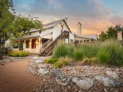 Stone House Ranch stands apart as a rare opportunity to own a piece of Hill Country history. The 32.35 acre property features a meticulously restored German home, initially constructed in 1873. The house is nestled amongst majestic live oaks, creating a peaceful atmosphere. The gently rolling terrain, mature hardwoods, and open pastures create a beautiful Hill Country setting with stunning views. Located just 15 miles northeast of Fredericksburg, Stone House Ranch offers a peaceful, private retreat while remaining within easy reach of town, wineries, and other local amenities. Historic German homes in this condition are increasingly rare, and the combination of setting, architecture, and location makes this a truly special offering. The centerpiece of the ranch is a stunning two-story 2,888' sf historic limestone home that perfectly blends old-world craftsmanship with modern comfort. Originally constructed in 1873, the three-bedroom, two-and-a-half-bath residence showcases native hand-cut limestone walls, long leaf pine floors, and beaded board ceilings accented by large-exposed beams. Portions of the interior feature beautifully exposed rock walls, highlighting the home's original construction and adding warmth and character throughout. The dining room features a beautiful rock fireplace-one of three fireplaces found in the home. The kitchen is both warm and functional, with a gas range, farm sink, and generous countertop and cabinet space. Expansive covered porches provide ideal spaces to relax and enjoy breathtaking Hill Country vistas. The yard is fully fenced and thoughtfully landscaped, offering both beauty and privacy. The home is tucked beneath mature live oaks, surrounded by lush landscaping and a fenced yard, which creates an inviting, peaceful atmosphere. With its serene location and scenic surroundings, Stone House Ranch offers an ideal opportunity for full-time living, a weekend retreat, short-term rental, or a legacy property to be enjoyed for generations. Terrain includes a nice mix of improved pasture, native rangeland, and mature hardwoods. North Grape Creek bisects the front of the property for approximately 830' and is lined with large native pecan and cedar elm trees. A 5.4 acre field has historically been utilized for hay production and could easily be repurposed for livestock, cultivation, or potentially a small vineyard or orchard. Traveling north through the property, the elevation gently rises, revealing beautiful views back to the south. The north end of the ranch features a scenic grove of post oaks, which could be an exceptional secondary homesite or quiet retreat to enjoy the Hill Country landscape. In addition to the main residence, the ranch includes a 2,900' sf two-story hay barn that provides ample storage and utility space for equipment, feed, or future ranch improvements. The ranch supports a healthy population of native wildlife, including whitetail deer, axis deer, turkey, and dove. The diversity of cover and the presence of the creek corridor create ideal conditions for both viewing and hunting. One water well provides water to the main home and barn area. North Grape Creek serves as a seasonal tributary that can temporarily flow with adequate rainfall. While not a constant water source, the creek bed and surrounding hardwoods add character and provide an inviting natural habitat for wildlife.