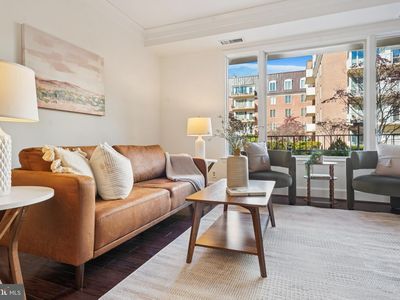 Natural light, park like courtyard views, and an exceptional layout define this spacious three bedroom condo in the South Building of 8101 Connecticut Avenue. Overlooking the communitys private, landscaped courtyard, accessible exclusively from within the complex, this 1,763 square foot residence offers seamless single level living with gracious proportions and refined finishes. The welcoming foyer opens into a large, light filled living room with sliding doors to your private patio, perfect for coffee, a good book, or quiet conversation under the trees. Hardwood floors run throughout the home, connecting multiple zones for relaxing, entertaining, or working from home. The dedicated dining area is beautifully sized for dinner parties or everyday meals. The kitchen is equally functional and inviting, with new stainless steel appliances, quartz countertops, and abundant cabinet space to make cooking and hosting a pleasure. The bedrooms include a spacious primary suite with a large walk in closet and a private bath featuring a separate vanity area. One of the additional bedrooms is fitted with custom built ins and receives beautiful morning light, ideal for use as an office or guest room. The third bedroom features a walk in closet and uses the nearby full hall bath, offering a comfortable and private space for family or guests. Additional highlights include a separate laundry and utility room with washer and dryer, two garage parking spaces, and two private storage units, including one conveniently located just down the hall from your front door. 8101 Connecticut is a full service, pet friendly building with a front desk concierge, beautifully landscaped grounds with water features, multiple seating areas, and ample guest parking. Just down the street, Chevy Chase Lake offers a growing mix of shops, restaurants, groceries, and cafs, including Starbucks. Nearby favorites include Amazon Fresh, Maman, Don Khao, Elena James, UnCorked wine bar, Saras Ice Cream, Mollys Pet Services, StretchLab, and RTR Pilates. The Montgomery County Library is next door, and Rock Creek Park trails, bike paths, and major commuter routes including the Capital Beltway are close by. Experience the ease of single level living in one of the largest floor plans at 8101 Connecticut Avenue, with park like courtyard views, generous space, and a location that balances serenity and convenience. Chevy Chase Lake is just down the street, offering shops, restaurants, groceries, and cafs, while downtown Bethesda and Friendship Heights are also only a few minutes away. Welcome home.