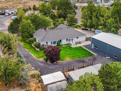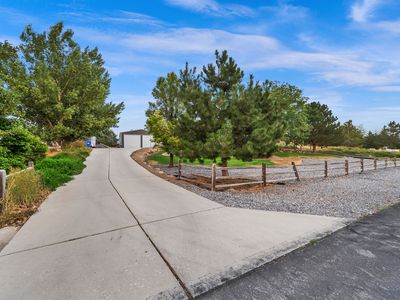 RARE EQUESTRIAN RETREAT, MASSIVE SHOP & STUNNING GROUNDS.. Discover a one-of-a-kind Rambler/Ranch home in coveted Eagle Mountain, set on 1.31 serene acres with room to breathe, play, and entertain. This exceptional estate blends country charm with modern comfort and is designed for horse lovers, hobbyists, and anyone craving extra space. Equestrian features include three 24' x 12' horse stables and an impressive 24' x 50' stall, while the beautifully landscaped grounds showcase mature pine and fruit trees, vibrant shrubs and flowers, and even an underground root cellar. There's ample space to park horse trailers, equipment, and recreational toys. A true highlight is the detached 40' x 60' heated shop with 16' x 14' doors-large enough to accommodate eight cars or two full-size RVs-complete with RV electrical hookups inside and out and driveway parking for up to ten additional vehicles. The attached oversized three-car garage offers extra width and depth for everyday convenience. Inside, the home welcomes you with a vaulted-ceiling foyer, a formal living room that doubles as a home office, and a spacious great room anchored by a cozy gas fireplace. The gourmet kitchen is a chef's delight with granite countertops, custom cabinetry and backsplash, gas cooktop and wall oven, built-in microwave and dishwasher, and an oversized island with abundant storage. A large pantry, mudroom with cabinetry, and convenient half bath complete the main living space. The private owner's suite creates a relaxing retreat with a custom walk-in shower, jetted soaking tub, double-sink vanity, and generous walk-in closet. Two additional bedrooms, a full bath with double sinks, and a main-floor laundry with folding table and built-in ironing board add comfort and practicality. Downstairs, a walk-out lower level expands your living options with a huge family room featuring built-in entertainment center and bookcases, three additional bedrooms, a full bath with double sinks, a built-in study desk with cabinetry, and a large mirrored gym-ideal for workouts or dance practice. Thoughtful upgrades include central air, central vacuum, two new water heaters, and a two-year-old furnace and AC. Efficient propane heat and a private septic system complete the package. Whether you're hosting gatherings on the secluded covered porch, caring for horses, or tackling projects in the massive heated shop, this property delivers an exceptional blend of luxury, space, and functionality.