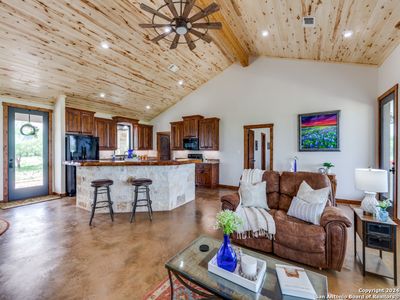 Exceptional Hill Country Ranch Estate with a gorgeous Custom home w/ an attached garage that was completed in '22 with the finest craftsmanship, 4 bed/ 2 bath Guest house, huge Workshop (from insulation & HVAC) with Caretaker quarters, attached oversized RV parking pad & a storage building with covered parking! Located at the highly desirable gated Big Draw Ranches, this AG EXEMPT estate spans 66.67 breathtaking primarily level acres. Offering true privacy amongst a lush landscape of wildflowers & native trees that provide cover for wildlife for the hunting enthusiast in a captivating & serene setting! There is only a nominal road maintenance fee. A well-fed pond supports wildlife that include White tail Deer, Axis, Turkey, Doves, Roadrunners & Hogs. Enter through a gated entrance that leads to the impressive home with stone exterior, accented by farmhouse vertical siding, standing seam metal roof & 2 covered patios. Enjoy magnificent morning sunrises, dramatic sunsets & starlit nights beside the stone fire-pit. This extraordinary residence is a balance of rustic elegance with superior artistry! The home encompasses 3 bedrooms, 2 baths with 2,904 sq.ft. of living space & an attached oversized 2 car garage. The home features a light filled Great room with a vaulted ceiling clad with Colorado Milled Aspen, a wood burning stove, stained concrete floors & large windows to take in the wildlife & splendor of the property with stunning views of "Tea Cup Mountain"! Open concept of Kitchen with Dining & Living area makes this an ideal layout for entertaining & relaxation. Gourmet Kitchen features custom cabinets, granite counters & a breakfast bar hand-crafted of mesquite. Woodwork throughout the home is hand made by 1 cabinet maker with Solid hardwood of Knotty Alder for Kitchen cabinetry, Entertainment center, Bookcase, Mud/ Laundry room, Bath cabinets & Guest room Murphy bed. Interior doors of Solid hardwood Knotty Alder. Accent walls in the Primary Suite & 3rd bedroom (used as an office) are rough bandsaw cut Colorado Pine. The luxurious Owner's retreat with 5-piece spa en-suite is a serene sanctuary! 2 spacious secondary bedrooms share a bath. The guest house is situated to afford privacy to the principal residence with a natural tree line. Custom built 2017 Palm Harbor "Big Bend" manufactured home with 4 bedrooms, 2 baths with 2,223 sq.ft. is filled with natural light! Open plan layout with living room featuring a wood burning stove. A fully outfitted kitchen to meet all your guests needs. Inviting Primary bedroom with oversized 5 piece en-suite. Finished with an outdoor deck & a fenced area planted with fruit trees. Upgrades: spray foam insulation under the home, replaced water heater, HVAC upgraded, insulation package and double pane windows. For all your projects & toy storage is a 26x60 Metal Workshop, adjoining caretaker's quarters & attached 26x40 covered RV port with outdoor sink. Improvements: foam insulation, electrical, HVAC/Heat pump. There is a game cleaning station next to the workshop. Hunting blinds, on demand & timed feeding stations are provided for wildlife. Well yield of 20+ GPM with water level 114 ft. below land surface. Well & Pump house system upgrades, & a 2,800-gallon concrete holding tank. Residence & Guest house have dedicated Generac Generators, each supported by Propane Tanks. Residence, Guest house & Workshop with water softeners. Perimeter Fencing- five sides have 4 or 5-foot fencing, the Eastern side has posts with barbed wire. This remarkable Estate provides the consummate setting to entertain guests, hunt & experience the pleasure of the Hill Country while creating everlasting memories! This property offers unsurpassed features: an extraordinarily crafted main residence, impeccable guest house, workshop with caretakers quarters plus a storage structure! Located 8 miles from Junction, 1 hr. to Kerrville & Fredericksburg, 45 min. to Mason, 11/2 hrs. to Boerne & just under 2 hrs. to San Antonio!